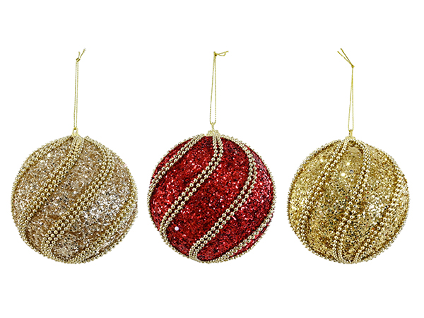 Glitter Bead Bauble 10cm Asst - XD0000754