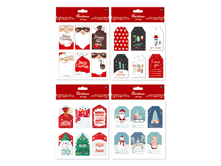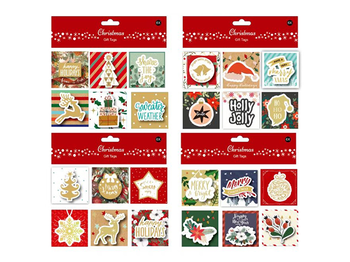 6pcs Gift Tags - 6x6cm - 4 Combinations - XS1038