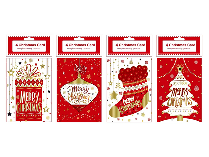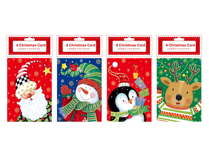 4pc Xmas Greeting Card - 9.5x13.5cm - XS1039