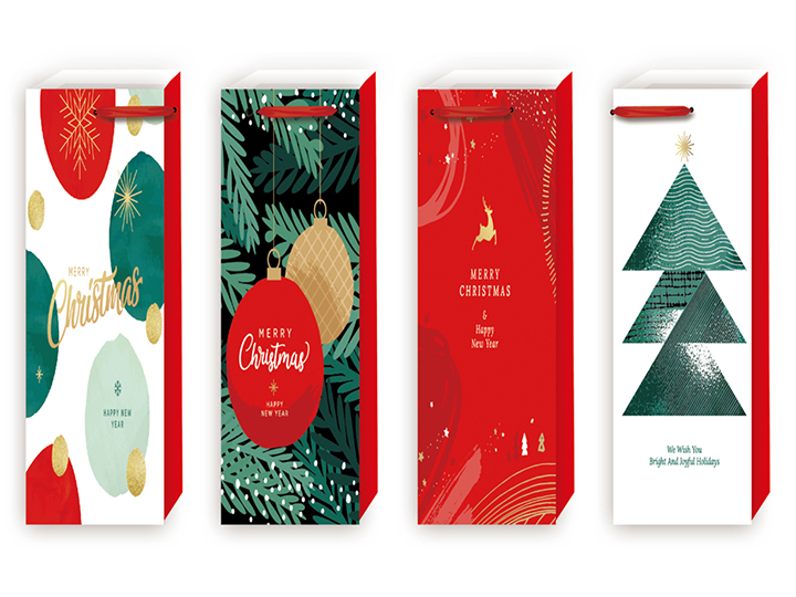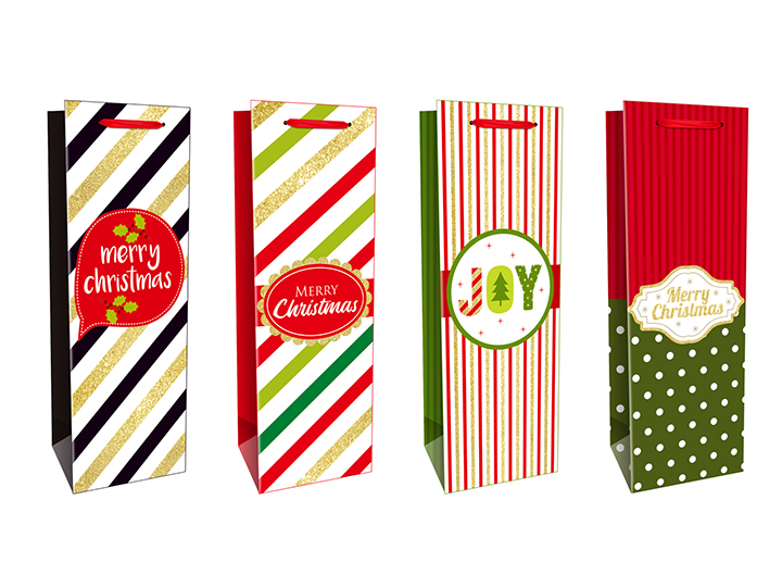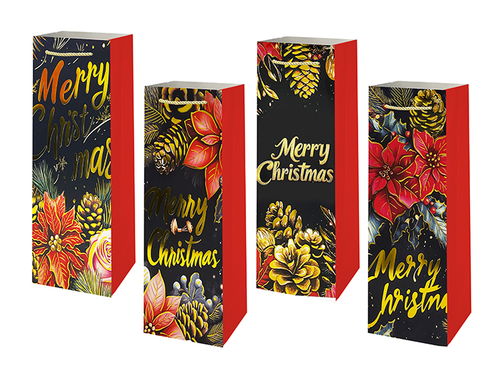 Xmas Paper Wine Bag - 35x12x10cm - 4 Designs - XS1200