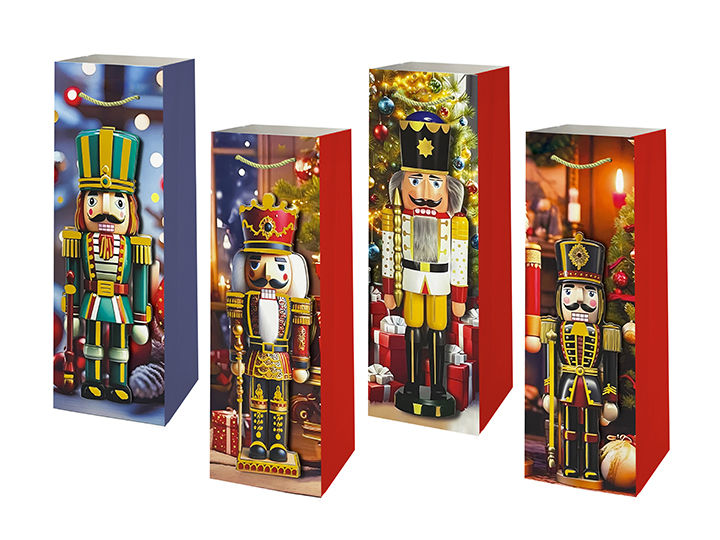 Xmas Paper Wine Bag - 36x12.5x8.5cm - Nutcrackers - XS1205