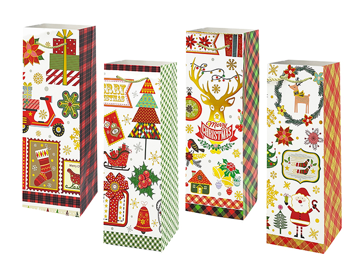 Xmas Paper Wine Bag - 35x12x10cm - 4 Designs - XS1202