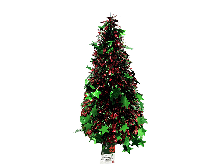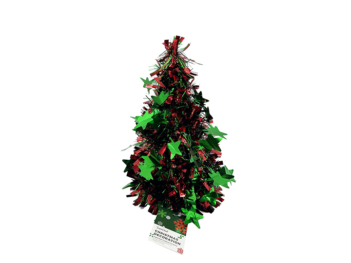 Xmas Tinsel Tree - 26cmH - Red with Green Stars - XS1502