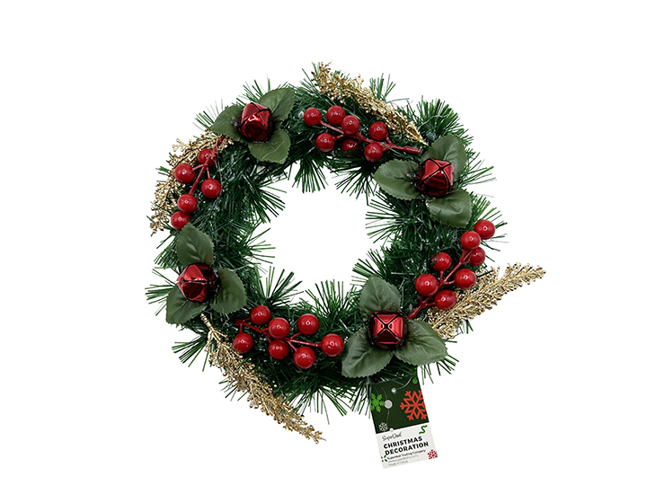 Tinsel Wreath - 24cm - Berries and Bells - XS1506