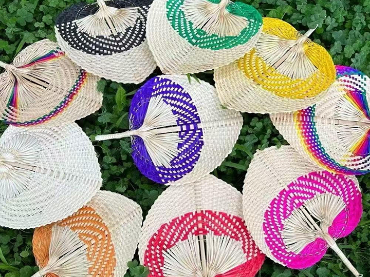 Straw Fan - Mix Colours - W30cm x H30cm + 10cm Handle - VP0024