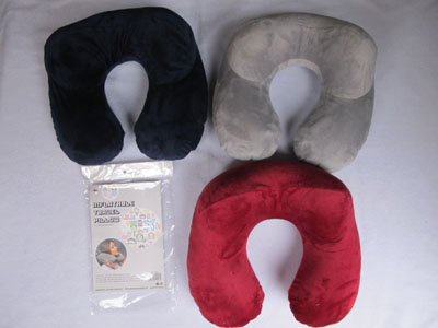 Inflatable Travel Pillow with Extra Neck Support - Grey, Blue and Red - AC1581