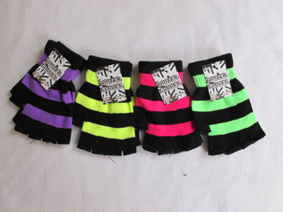 Knit Gloves - Open Fingers - Black with Neon Colour Stripes - GM0455