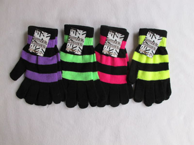 Knit Gloves - Black with Neon Colour Stripes - GM0456