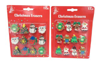 Xmas Eraser 10mm 12pc 3 Asst - XA6263