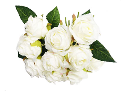 Artificial Flower Bouquet - Rose with Leaves - 10 Heads - White - AF0362