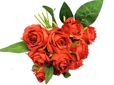 Artificial Flower Bouquet - Rose with Leaves - 10 Heads - Red - AF0363