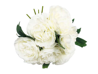 Artificial Flower Bouquet - Peony - 5 Heads - White - AF0372