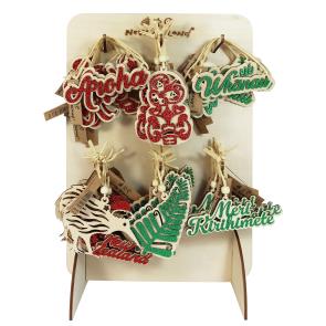 NZ Hanging Ornaments Glitter Wood w/Stand 6asst - 96805