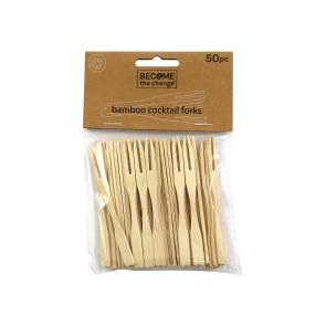 Party Bamboo Cocktail Fork 50pc 9cm - KUT7487