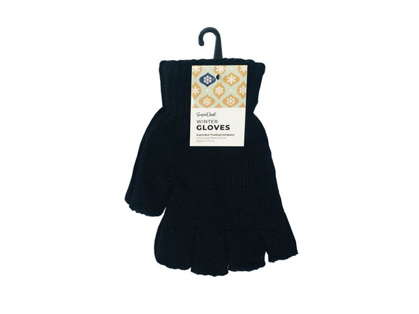 Kids Knitted Gloves - Open Fingers - Black - GM0419