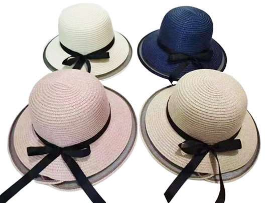 Summer Hat - Plain with Febric Bow and Adjustable String - GM0577