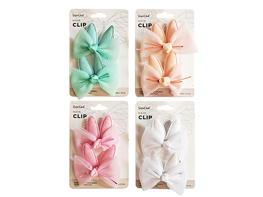 2pc Ribbon Hair Clip - Rabbit Design with Lace - HR0806