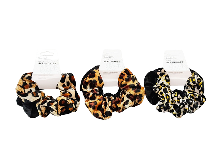 2pcs Hair Scrunchies - 1 black 1 Leopard Print - HR0958