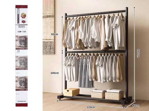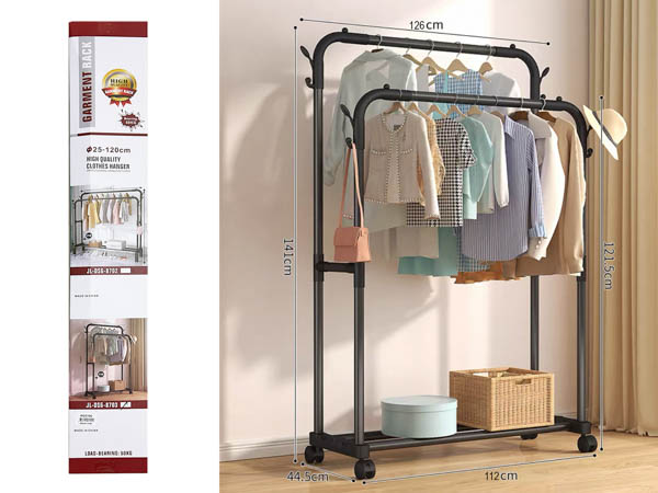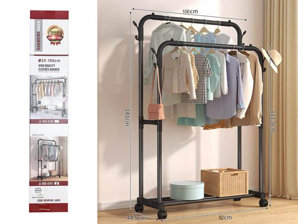 Double Layer Metal Clothing Rack with Wheels - H140/150cm x 120cm x 42cm - HO2700