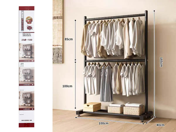 Double Layer Metal Clothing Rack with Wheels - H140/150cm x 100cm x 42cm - HO2699