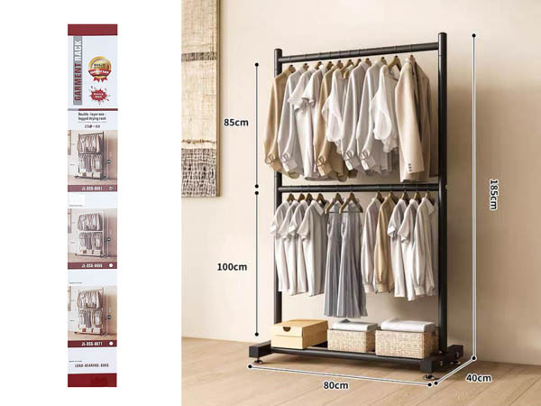 Metal Clothing Rack - H185cm x W80cm x D40cm - Black - HO2697