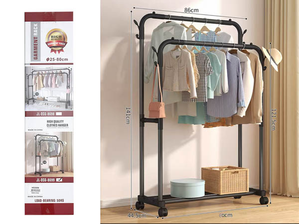 Double Layer Metal Clothing Rack with Wheels - H140/150cm x 80cm x 42cm - HO2698