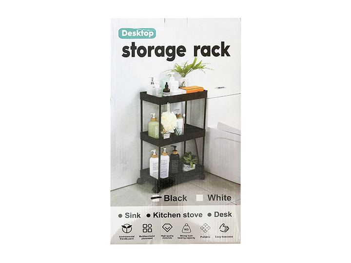 3 Tier Storage Trolley - Plastic Tray and Metal Post - Black - HO2701