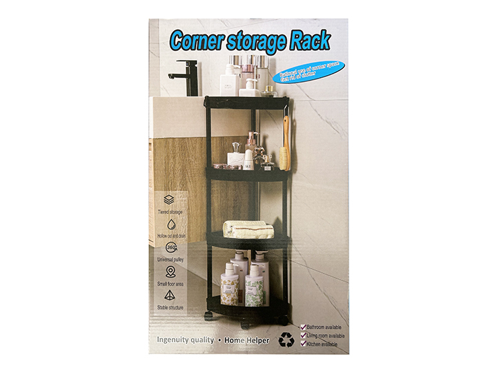 4 Tier Quarter-round Corner Rack with Wheels - Plastic Tray and Metal Post - Black Only - HO2703