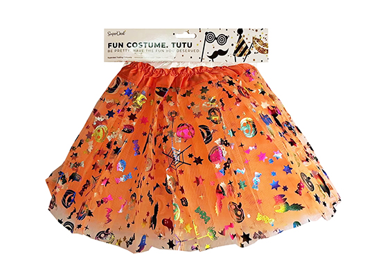Tutu - Twin Layers - 30cm - Orange with Halloween Pattern - PT2589