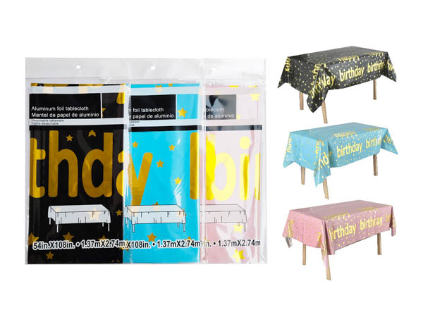 Foil Table Cloth - 137x274cm - Happy Birthday Print - PT3302