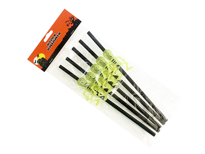 5pcs Drinking Straws with Glow In The Dark Skeleton - 28cm - PT3501