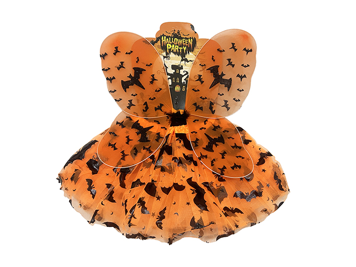 2pcs Costume Set - Neon Orange with Black Bat Print - PT3524