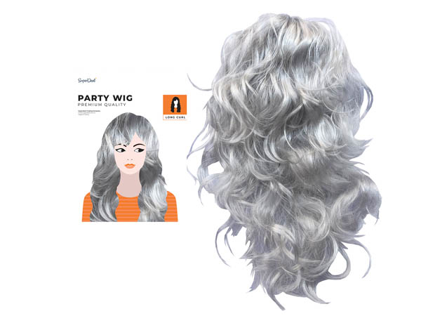 Party Wig - Long Half Curl - Silver Grey - PT1287