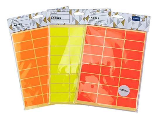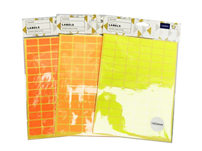 12 Sheets 24pc Adhesive Labels - 2.4x5cm 3 Colour - ST0071