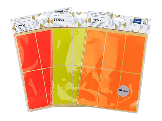 12 Sheets 6pc Adhesive Labels - 5x10cm 3 Colours - ST0076