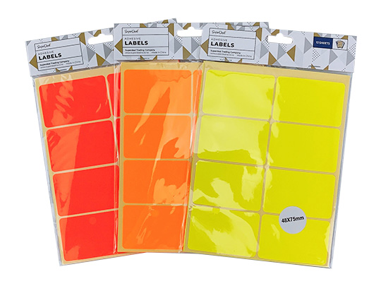 12 Sheets 8pc Adhesive Labels - 4.8x7.5cm 3 Colours - ST0077