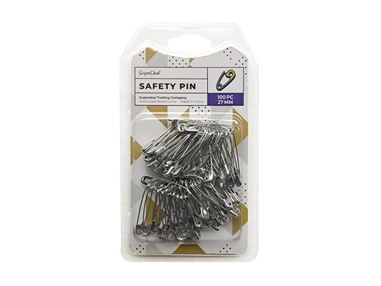100pc No1 27mm Safety Pin - Silver - ST0337
