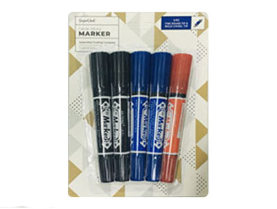 5pc Twin-Headed Permanent Markers - Large Chisel Head and Small Round Head - 2 Black 2 Blue 1 Red - ST1356