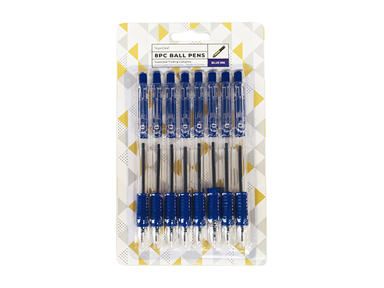 8pc Ball Pen with Grip - Blue - ST1369