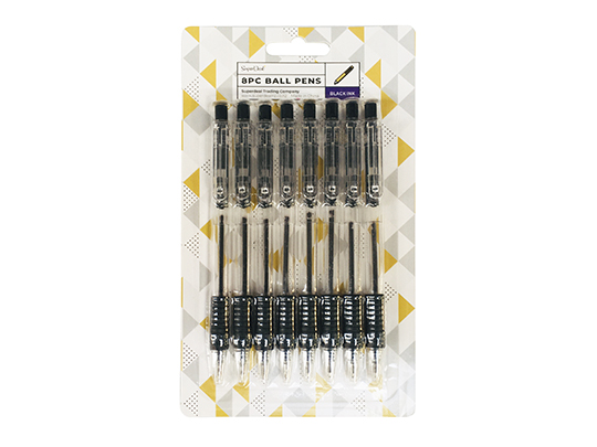 8pc Ball Pen with Grip - Black - ST1370