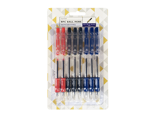 8pc Ball Pen with Grip - Blue Black and Red - ST1371