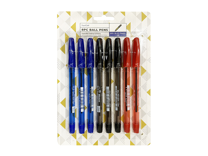 8pc Ball Pen - Blue Black and Red - ST1374