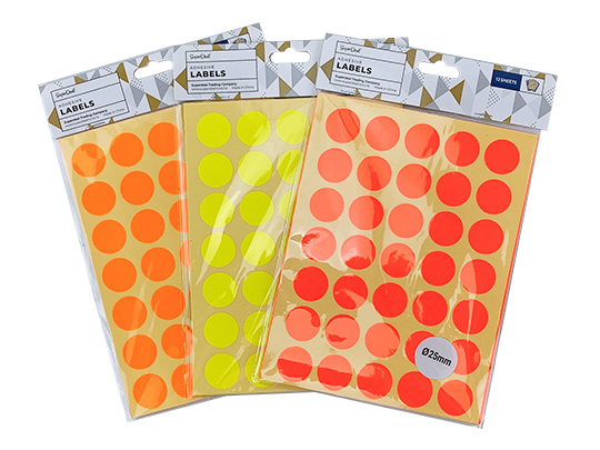 12 Sheets 35pc Adhesive Labels - 2.5cm Round 3 Colours - ST1385