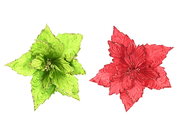 Velvet Sheer Poinsettia Clip Asst - XD0000688