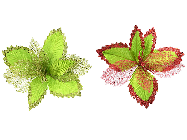 Glitter Mesh Poinsettia Stem Asst - XD0000565