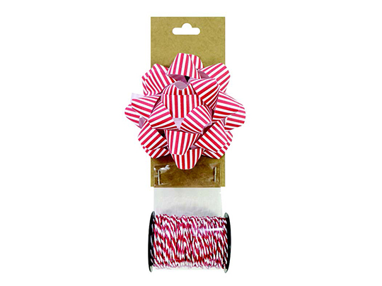 GIFT BOW & PAPER TWINE 2pc CANDY STRIPES - XP0261