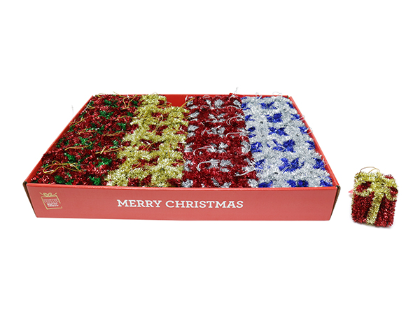 TINSEL HANGING PRESENT 6cm 4asst PDQ - XB2776