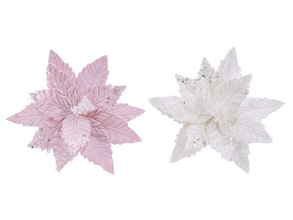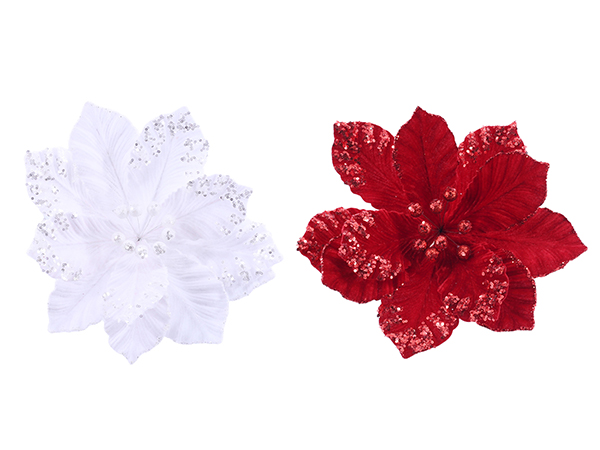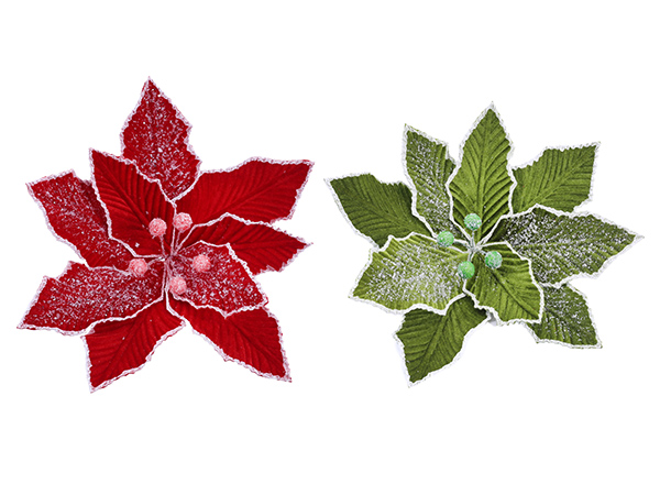 Christmas Iced Poinsettia Clip Asst - XD0000153
