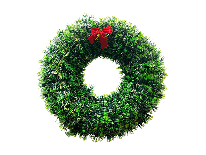 Green Tinsel Wreath with Red Bow - 44cm Dia - XS0596