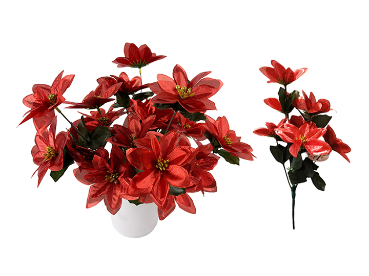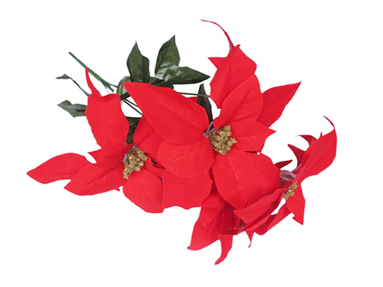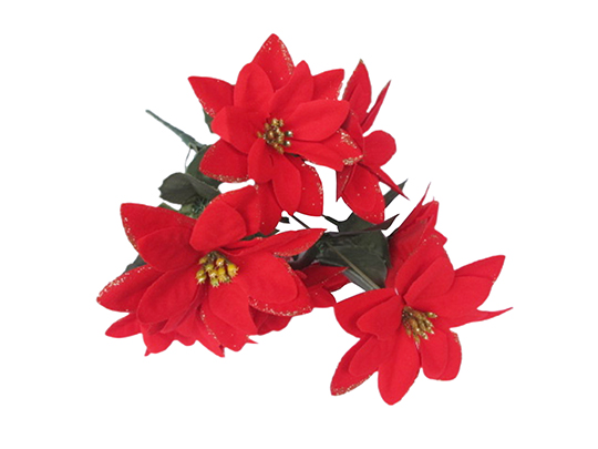 Xmas Flower - 7 Head Poinsettia with Glitter - 32cm - XS0604